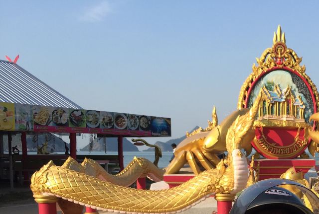 重点,坐船到达一片海滩后,走到登山处,英文简介说洞穴在430多米的高度,走路大约30分钟。可实际上30分钟根本到达不了,因为道路非常难走,基本都是松石组成。此外,如果有老人或小孩,那简直了,得爬快一个半小时,才能到达泰王修建的寺庙。