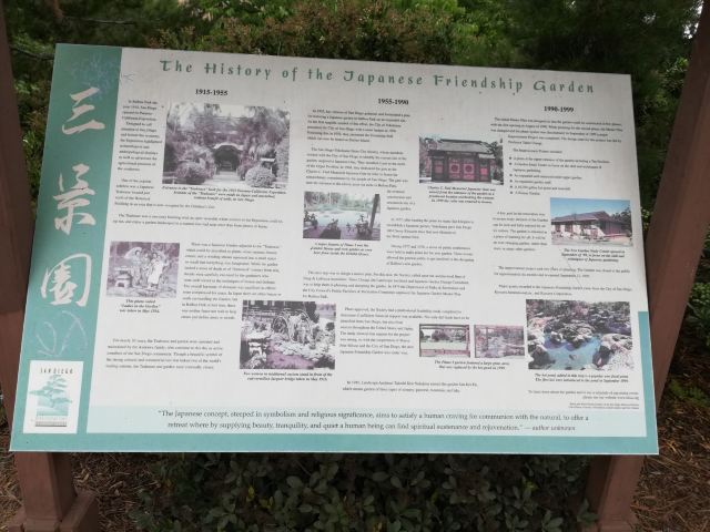 圣地亚哥和日本横滨市是姐妹城市,因此这座公园也成了两个城市友谊的象征。这和拥有美国最古老的日本公园的西雅图有些不同。(西雅图的日本花园是由当地的日裔人积极筹款建造出来的。)1999年,日本著名建筑师Takeo Uesugi完成了友谊公园的设计,但是直到2015年他所有的建筑理念才得以实施。Uesugi的设计理念完全遵循返璞归真的原则:曲桥流水、石灯笼、日本枫树、松树、杜鹃花卉,茶馆,等等等等。走进公园,立即感叹日本人的匠心独运,对大自然的热爱。