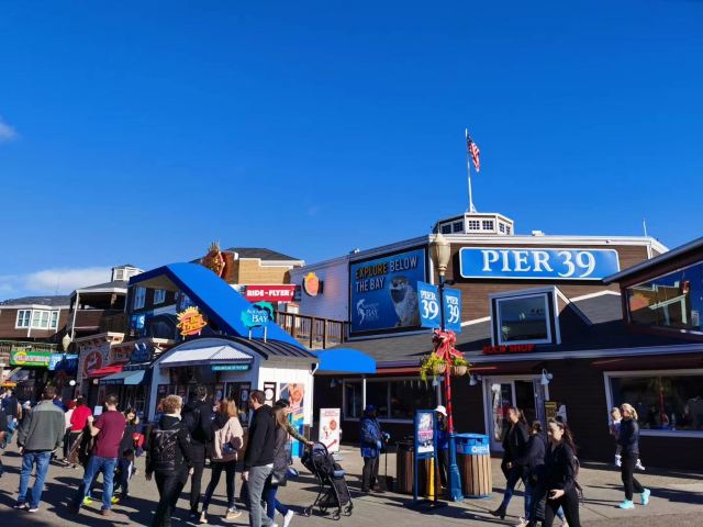5分 超棒Pier 39,三十九号栈桥,指旧金山的第三十九号码头。经过时间的大浪淘沙,这个三十九号码头已经是旧金山渔人码头中最热闹最著名的景点。