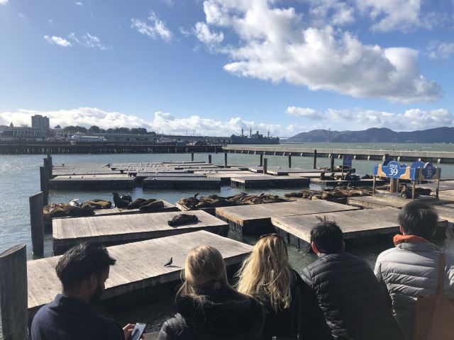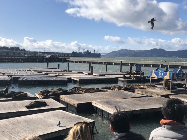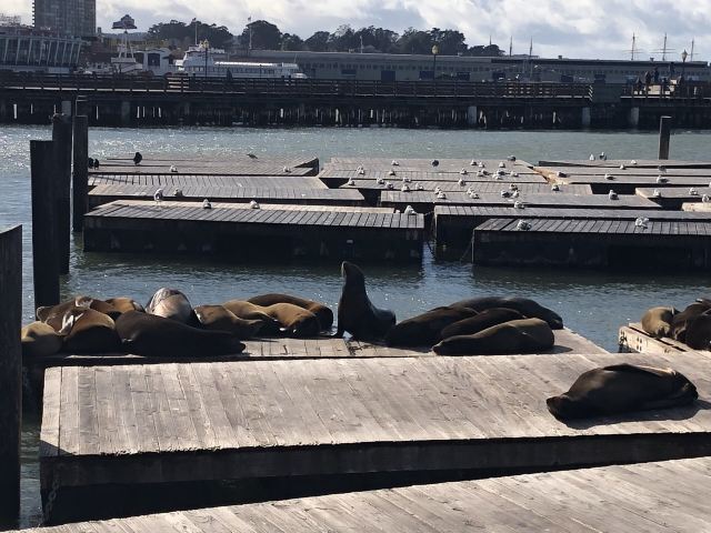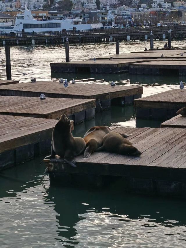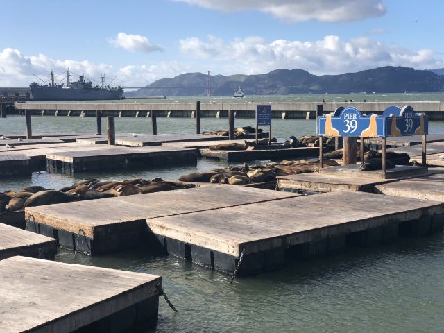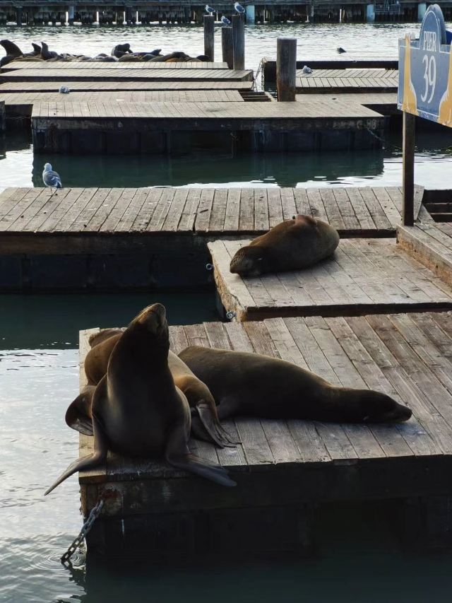 39号码头也是加州海狮的栖息地。虽然它们的数量在一年中会有起伏,但你几乎总能在39号码头的K-Dock看到几只海狮悠闲地休息。