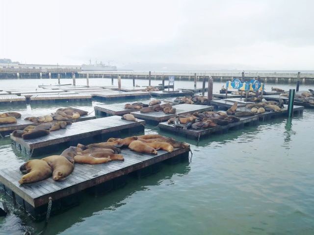 喜欢逛小商品的会觉得时间不够用,不喜欢逛的也就觉得没什么好待的了。边上就是海豹滩,可以看到成群的海狮海豹傻傻分不清。因为在港口,风有点大,加上SF常年会有点凉,建议带件防风的衣服观景~
