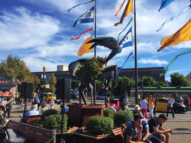 某个不眠之夜,从洛杉矶飞到旧金山,在铛铛车声中来到渔人码头,然后渔人码头螃蟹标志处走到39号Pier......