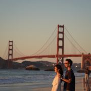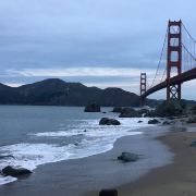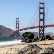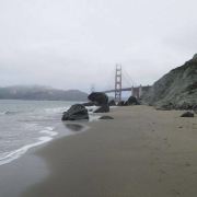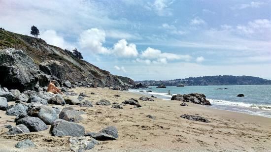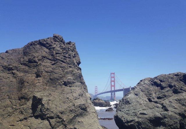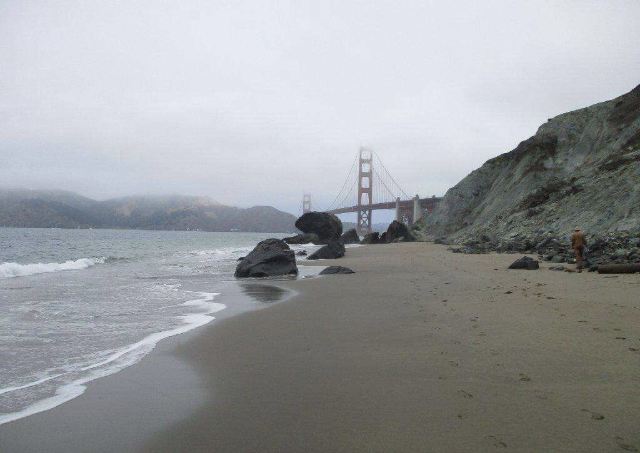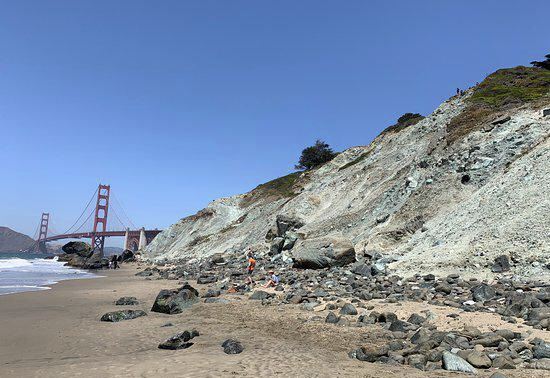 该沙滩位于旧金山,这里的海岸崎岖又多石,甚至连海滩上都夹杂着形态各异的礁石,但这里视野开阔,可仰视金门大桥全景,还是个欣赏日落的好地方。