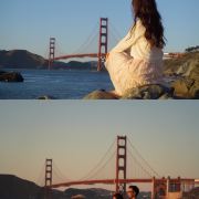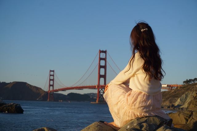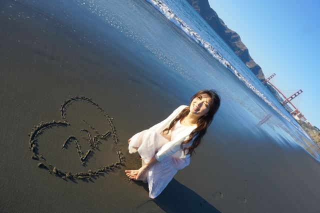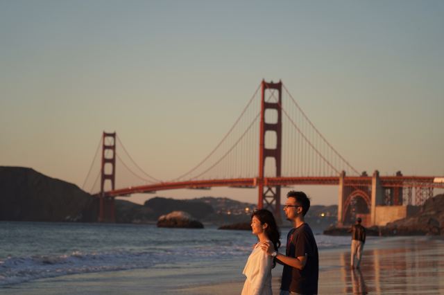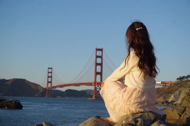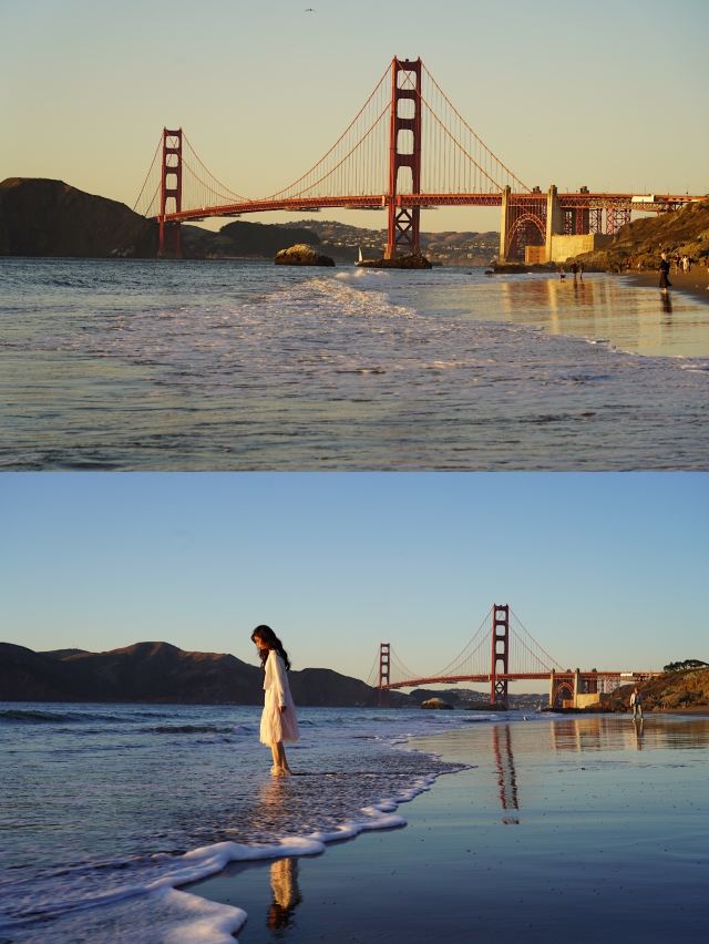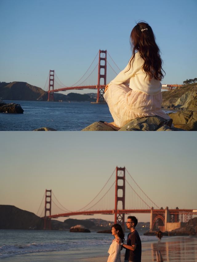 因为背景是金门大桥嘛,所以蓝天蓝海,还有沙滩,真的特别美✨。