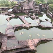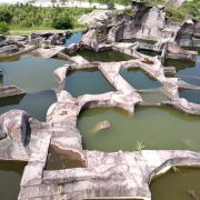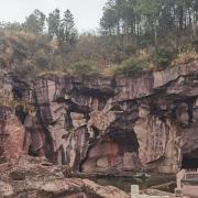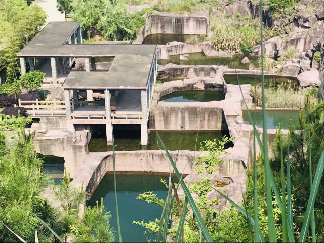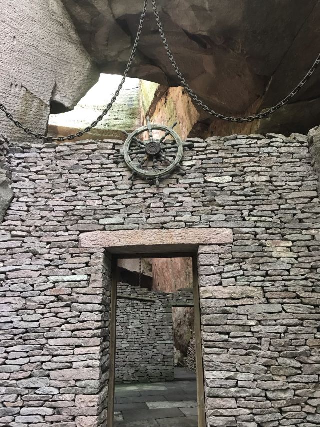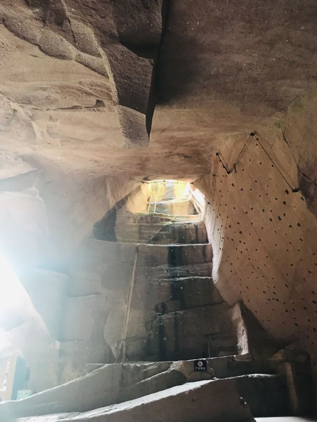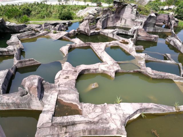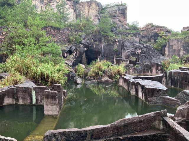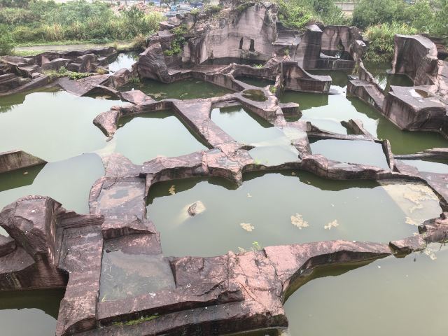 蛇蟠岛的地貌特征在海盗村的一个观景平台里最为直观。1997年炸山取石时发现整个海岛的山头早已被掏空,像个不规则的马蜂窝,又像个巨大的、被掏空了的核桃売。