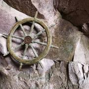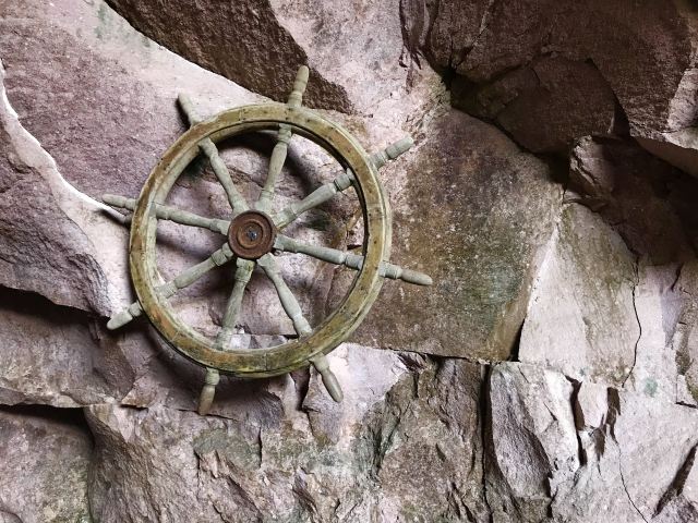 浙江三门的蛇蟠岛上有一个景点——海盗村。城堡式的城墙围成了海盗村的大门入口,而城墙中央的铁锚上,“海盗村”三个遒劲有力的大字豁然醒目。锚柄的顶环已经腐蚀破损,像一只残缺的爪子挣扎着伸向天空,似乎还在诉说当年的峥嵘与搏杀。