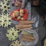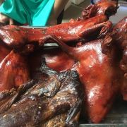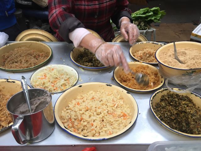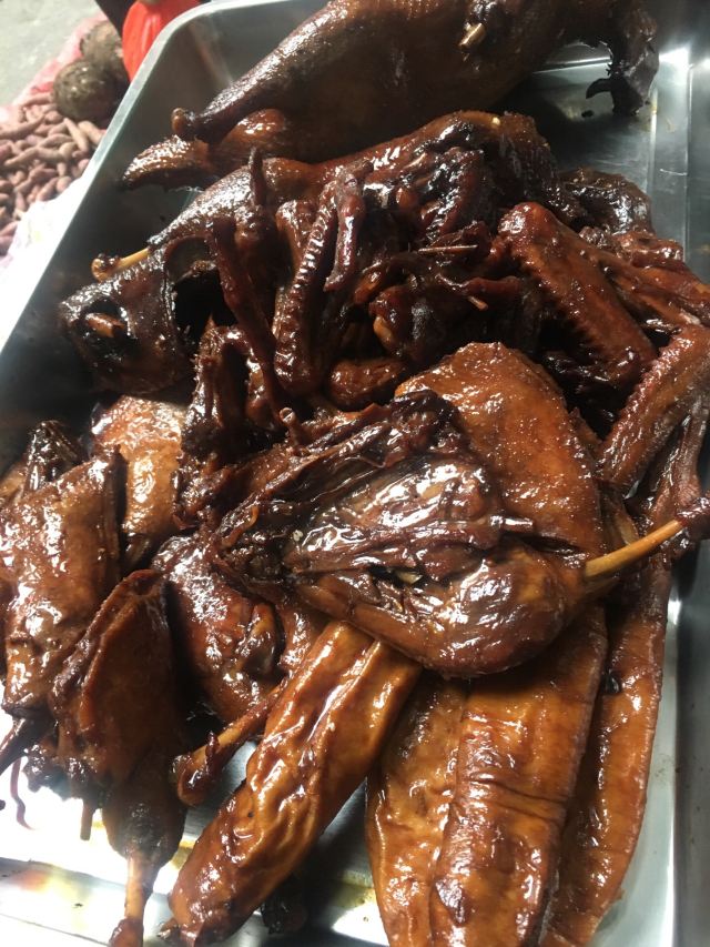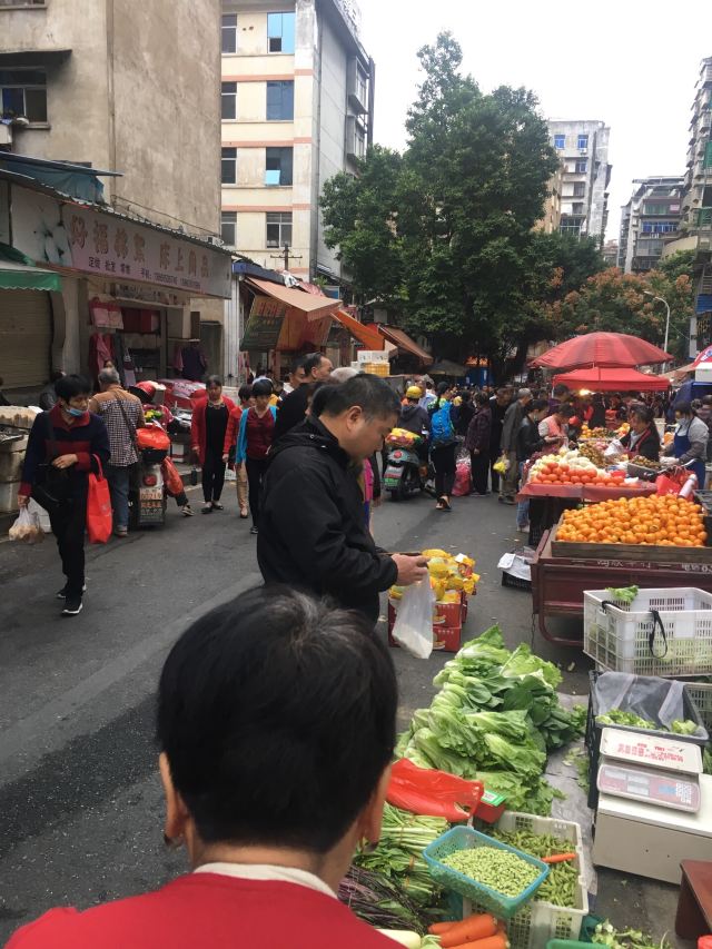 三明,有条早市街,仅步行,不通机动车。这是很热闹的市场,各种土特产品排满了街两旁,使得原本不宽敞的路变得更加拥挤。三明是个山区,因此有很多山货,野芒果和小柿子,都非常可爱;还有各类熏鸭、熏兔;金包银、烧卖等各种小吃让人食欲大动;这里的蔬菜也很新鲜,水灵灵的。这是一条很有烟火气息的街。听说9点后就停止了。