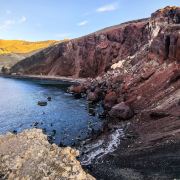 红沙滩在圣托里尼南端的Acrotiri(阿克罗提尼)旁,这是一片景致迷人、与世隔绝的美丽海滩。这里有大片大片的红色裸岩,岩石因富含铁物质,因此呈现出迷人的红色,在阳光的照耀下显得更加神奇和耀眼。