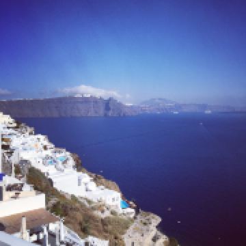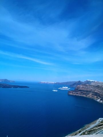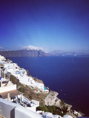 圣托里尼岛呈月牙状自北向南排开,地势缓和的东部则散布着海滩;中部的丘陵遍地布满了葡萄园;西侧有大面积的悬崖峭壁,高耸相连,悬崖上建了许多酒店,在平静的海湾上坐享360度的美丽海景,观看日落,十分浪漫。岛上主要的小镇是费拉小镇和伊亚小镇。