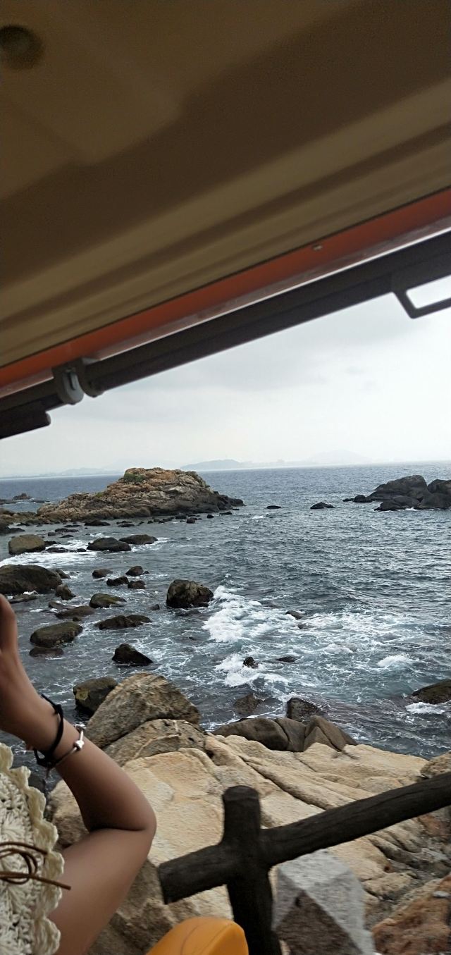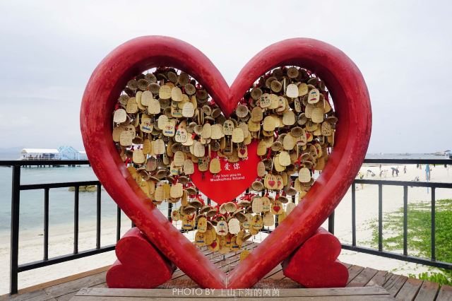 原是座铁索桥,是当年守岛部队的海上瞭望点。走在摇摇晃晃的铁索桥上,需要几分胆量和机灵。有些女士既想过桥到瞭望点里体会一下,又怕掉进海水里,过桥时紧紧抓住朋友的手不放,因此这桥又被戏称为“情人桥”。后来我岛为客人安全着想,故将原来的铁索桥改造成现在的木板桥。有兴趣过“情人桥”的朋友,不妨上桥试一试。