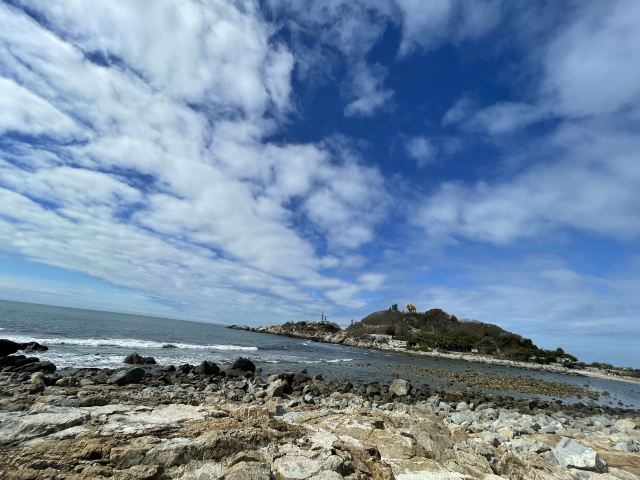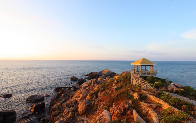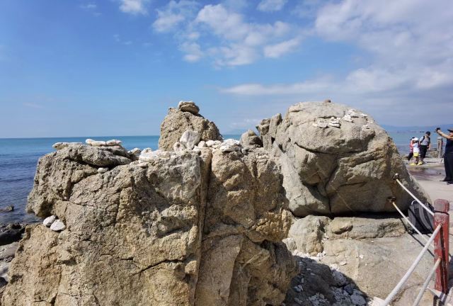 这里拥有最原始的海岛风光,可以欣赏到壮阔的海天一色、鬼斧神工的礁石景观以及星罗棋布的军事遗迹。牛王岭是西岛的最高处,登此岭可观望四周,视野非常好,海边有不少礁石,是来听潮水拍岸声音的好地方。牛王岭上建有曲桥回廊,亭台石雕,岭顶有一雄伟雕塑叫金牛望海,登上去一点不费力,可以一览这片海域的全景。