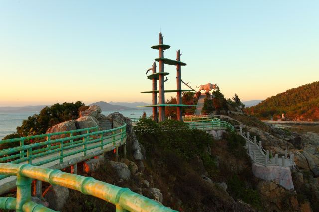牛王岛虽小,但岛上有南北两座小山,也设有纵横交错的登山小径。来到岛上,可随性闲逛,四顾山、海、天、石,或在观海亭台坐下来,静静地望着大海、听着海浪拍打礁石的声音,令人心旷神怡。