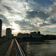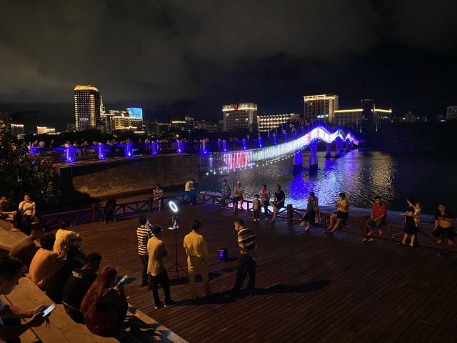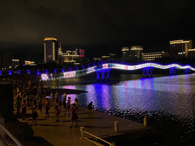 如今,这里也成为了三亚的景观河,晚饭后沿着三亚河无论是河东还是河西,晚风习习,尤其是新风桥到三亚大桥的这段,晚上的景观灯很漂亮,沿河的小广场都有健身舞蹈活动,很热闹。