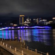 5分 超棒三亚是国内知名的旅游之城,是大家公认的的避寒胜地,冬天也可以踩海滩吹海风,也可以下海游泳戏水。碧海蓝天、椰风海韵,有山有海,还有河流,三亚河和临春河是三亚的母亲河,这两条河把三亚这个城市打造成天然的“丫”字形,所以开始叫三丫,后来改为叫三亚。诚然,有了河流,有了海洋,自然也有了桥梁,三亚的每一座桥,欣赏价值与实用价值并存。上次已经分享过翡翠项链彩虹桥-情人桥。今天分享处于繁荣闹市区、链接三亚东、西城区主干道的[三亚桥夜景]。其亮点就是除了机动车道、非机动车道还有人行道。给游客与市民提供了游览观光的机会。感谢三亚政府的好举措。