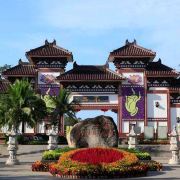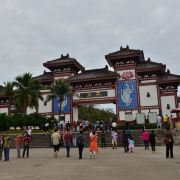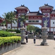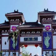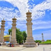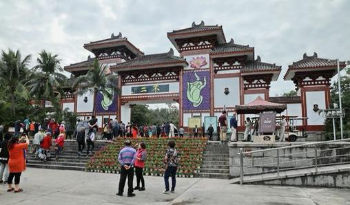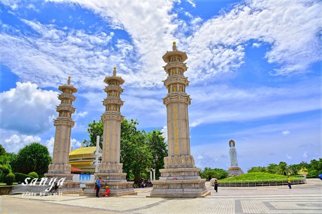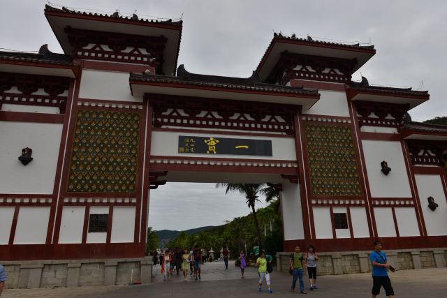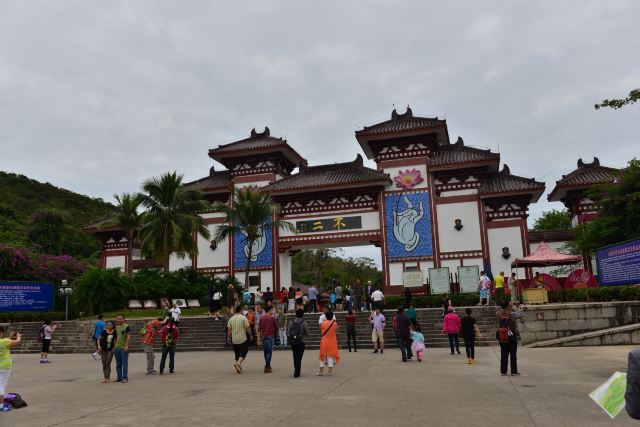 4分 满意进入三亚南山文化旅游区景区后首先看到的是不二法门这个景点,后面是一实法门,“不二法门”是一个由大型南北朝风格建筑六楼、建筑、群像雕塑、经幢、石刻、浮雕、园林组成的景点。这里的每个小品与建筑都体现出佛家思想精髓-“不二”理念。