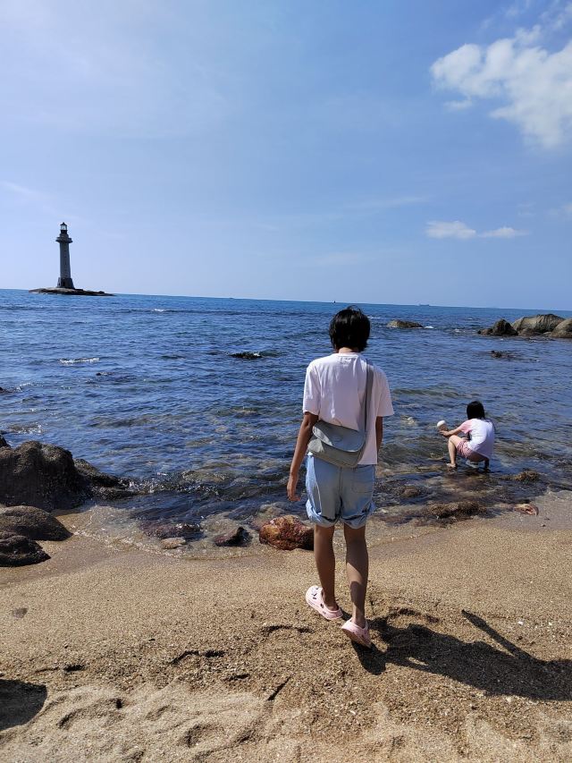 灯塔:在海天相接的画面中,不远处海面上,一座灯塔遗世独立,仿佛世界的尽头。