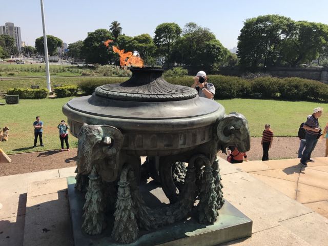 纪念碑底座是心形,而纪念碑自身则寓意一把巨大的利剑,直接插在了圣保罗的心脏上。所导致人,能从这组雕塑感受到这座城市背负着巴西太多的奴役之痛。纪念碑前雄雄燃烧着的那炉烈火还在燃烧,它既象征着巴西人热情奔放、活力四射的天性,还代表着巴西人民对对独立、民主、自由的向往生生不息。