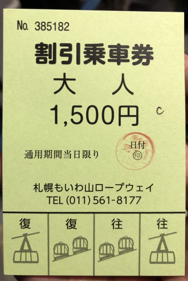 藻岩山的缆车很有意思,全程分为两段。从山麓到半山腰为悬挂式索道(Ropeway),而从半山腰到山顶则是在轨道上滑行的Morisu迷你缆车(Mini Cable Car)。