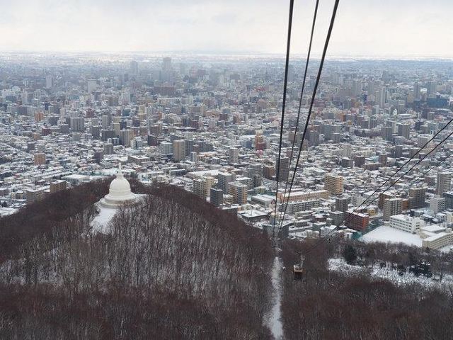 大家在在缆车里可以看到东北侧有一个白色佛塔,是为了纪念二战期间逝世的人于1959年而建立。海拔178米,高度33米,全名为“札幌和平塔”,祈求世界及日本和平,塔内安放有印度第一任首相尼赫鲁赠送的佛舍利。