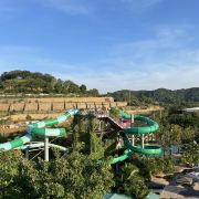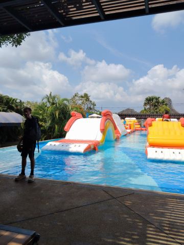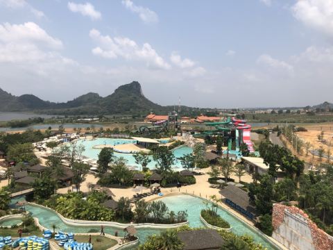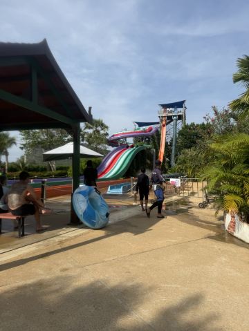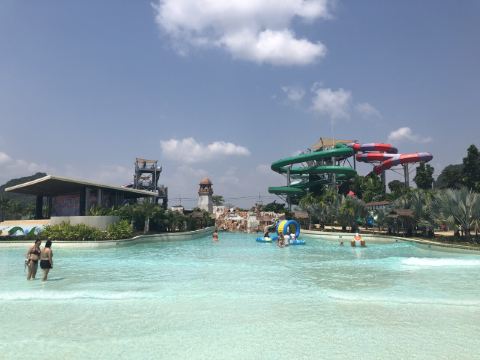 4分 满意一个地方超大的水上乐园 不但有水上滑梯 还有一些小型羽毛球乒乓球提供玩乐 我们一入场是中午 这段时间 不知是否职员放饭所以暂停所有水上设施 我们就睡在帆布床晒太阳及喝果汁 这乐园很大但很少人去玩 大部分都是外国游客 我们几乎不用排队 玩完再玩 很开心 不用花太多时间排队 不过地方也是偏远 我们都是call的士去 另外更衣室很大 不过要租借毛巾、locker 要另外付钱。智能手能Qr code也很方便 入钱之后就靠手带在乐园付钱买食物等等。另外,每次玩滑梯都会有扫QRcode 自己录影玩的过程 玩完有个电子板 可以输入自己email 所录影过的滑梯过程 都可免费send到email 这个很好。