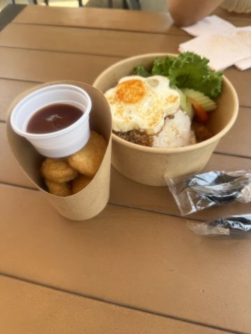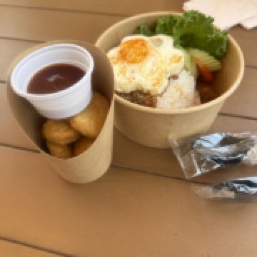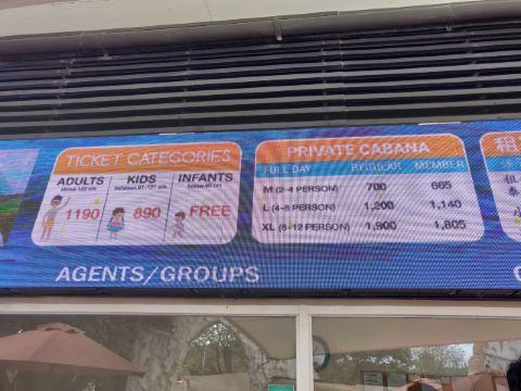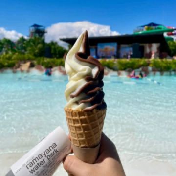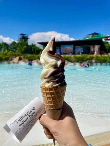 园区餐食比外面贵一些,但是绝对也是可接受范围,12-16点的自助餐现场买是299泰铢,如果决心要去的话还是提前购好。我因为早午饭吃了比较饱,就单独买了份炒米粉120泰铢,冰淇淋69泰铢。