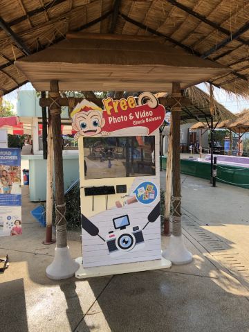 手机是可以带着游玩的,还有那种GoPro的摄像机,做好防水准备。还有就是每个项目下去之前都有个扫描机,记得扫一下自己的腕带,下来后可以在电脑上查找刚才的合成视频,发送到邮箱哦!