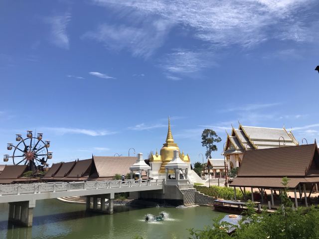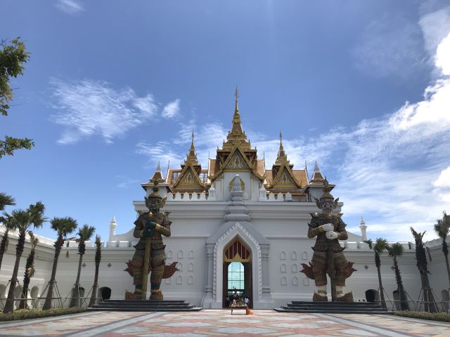 5分 超棒园区很大,建议租辆高尔夫球车自驾游园,里面有几个主题:泰国古建筑,市集一条街,百年古庙,四面佛,机动游戏区,泰式按摩店,还有泰式餐厅,中式餐厅,西式简餐,咖啡厅,非常适合一家人游玩。