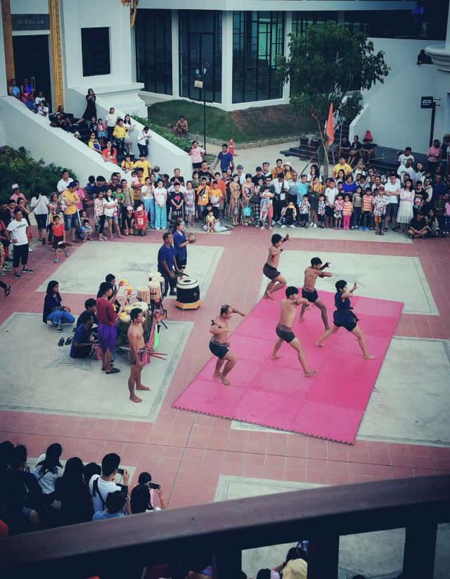 广场的泰拳表演很精彩,想不到连一向坐不住的孩子们都被深深吸引了。