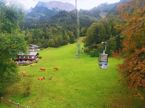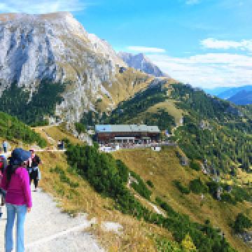 5分 超棒耶拿峰缆车,可以俯瞰国王湖。好天气只支持了半天,下午就开始变天,因为天气预报说明天要下一天雨,所以我们决定今天把缆车坐了。缆车票正常往返是29欧,过了三点就打折,24欧,4:45是末班,我们赶在四点半上去了,上面的景色确实太震撼,缆车一直送到耶拿峰顶,单程要15分钟。所以票价简直是特别值。缆车到顶后还需要爬一小段,就是图7,就会真正登到山顶的一个小平台。回程的缆车是5点末班,我们没时间登顶了,只能跑到第二高的平台,也算是看到了国王湖的全景图5,可惜天气不给力,不能看到清楚的全景。这时候就已经开始下雨了,而且是雨夹雪,虽然视野不是很好,但是山间的云雾特别震撼。这时候不同手机的拍照差距就展现出来了,总之,耶拿峰缆车登顶项目是绝对值得体验,五星推荐!