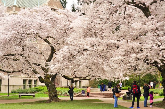 5分 超棒华盛顿大学(University of Washington),简称UW,是位于美国华盛顿州的一所公立研究型大学,不仅是美国西岸历史最悠久的公立大学,而且号称是全美前三的最美大学!如果你来西雅图就请务必安排一天的时间来游览,一定不会让你失望!华大以其优美的自然环境和卓越的学术氛围闻名于世,漫步在校园里,你会发现绿树成荫,鸟语花香,仿佛置身于一个巨大的植物公园之中,校园内有许多标志性建筑,其中最著名的是哈利波特风格的图书馆,国人戏称苏州楼,这座宏伟的建筑不仅是学术研究的圣地,也是拍照打卡的热门地点,站在图书馆前,你会被它的庄严气势所震撼,更为震撼的当属喷泉雪山相互辉映的场景,每年樱花季,不计其数的海内外游客蜂拥而至的来此观赏这一独一无二的自然奇景!
