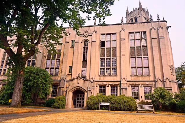 华盛顿大学简称UWashington或UW,是一所享有盛誉的公立研究型大学,成立于1861年。校园坐落在风景如画的华盛顿湖畔,拥有丰富的自然景观和历史建筑,是游客探索西雅图文化和教育氛围的理想地。