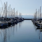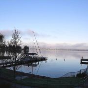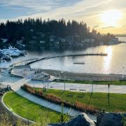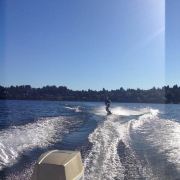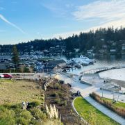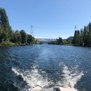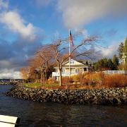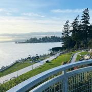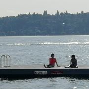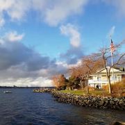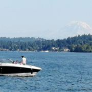 偌大的湖面就像是一片海。沿湖不乏造型别致的别墅,各式各样的木质船屋更添一番生趣盎然。从有名的浮桥Evergreen Point上往下开,在晴空映衬下熠熠生辉的雪山似乎近在咫尺,这水天一色的美景实在令人震撼。