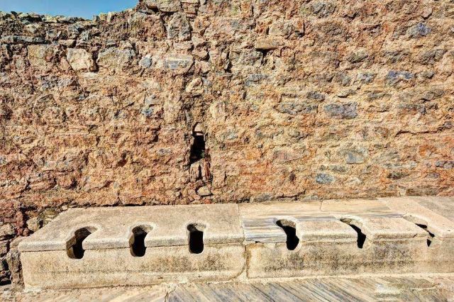 该男厕遗迹已经有两千多年的历史,被称为全球非常古老的公共厕所,从中可以了解到当时的古罗马人生活的原貌,趣味性十足。男厕中的石质坐便器保存良好,是古罗马男人们的交际场所之一。