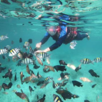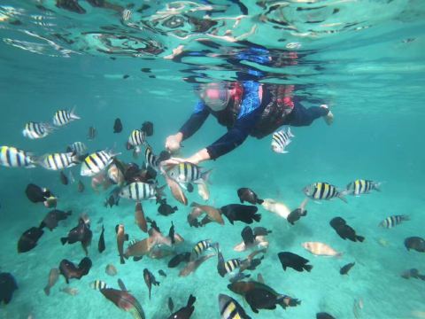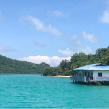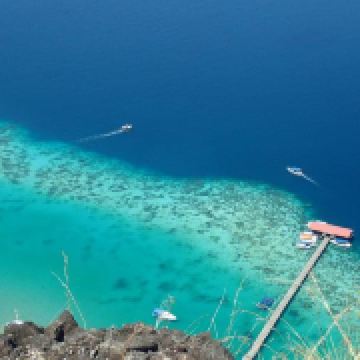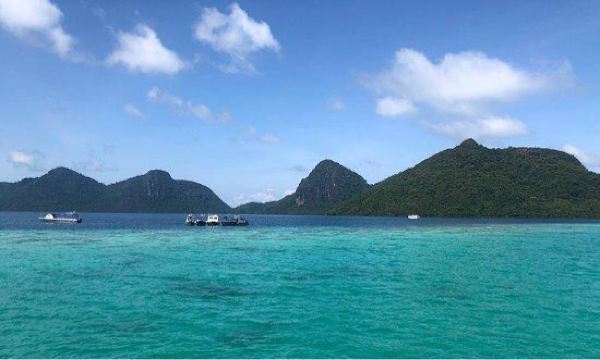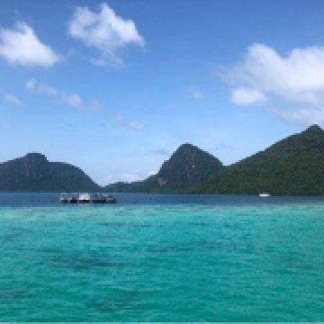 它是敦沙卡兰海洋公园群岛的第二大岛屿,岛上有热带雨林,是犀鸟、鹧鸪等各种鸟类的家园。珍珠岛山顶观景台是其标志性景点,游客需徒步 600 米登顶,约需 1 小时,途中山路较陡。登顶后可 360° 俯瞰敦沙卡兰海洋公园的琉璃色海水,深蓝与薄荷色交织,景色美不胜收。珍珠岛周边海域能见度超高,是浮潜的绝佳地点,游客可以看到珊瑚、海龟、小丑鱼等丰富的海洋生物。此外,这里还提供玻璃船划行等活动,适合亲子游玩。