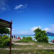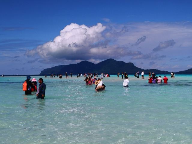 | 军舰岛属于敦沙卡兰海洋公园诸岛之一,外形似军舰,因而得名军舰岛。岛屿距仙本那镇约45分钟船程,为无人小海岛,景色非常美,高大的椰子树直插入天空,洁白的沙滩缓流入湛蓝的海水,清澈见底的海水下浮游着各种鱼类,海底生长着大片形态各异、颜色万千的珊瑚,美到让人沉醉。 为了保护当地的环境,政府不允许在这个岛上住人,游客都需当天返回,而且每个上岛的人都要登记姓名。 |
