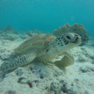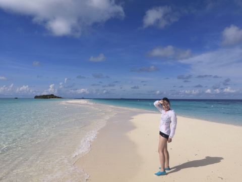 上午海平面退去些,露出s型的沙滩带,如同新娘的头纱一般迷人,可上岛拍照。接着船员带着我们去了海龟岛附近浮潜,每当船员发现了海龟就会拉着我们去看,第一次近距离看到海龟的我可激动了。汀巴汀巴的珊瑚花园非常漂亮!