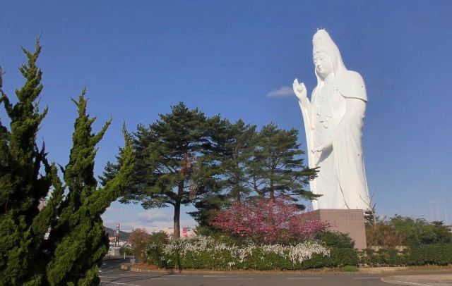 这座巨大的观音像位于仙台市北部,高达100米。可进入到观音像的内部,内部分成12层,供放着108尊的佛像。还可乘电梯到达顶层,从仙台的街市到太平洋都一览无余。