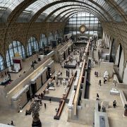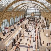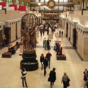 奥赛博物馆与卢浮宫隔河相望,现有艺术收藏约4千多件,陈列了从1848年到立体主义兴起之初长达近半世纪(1848-1912)的艺术作品,包括绘画、雕塑、家具陈设等。当地人常说,如果你想欣赏1848年以前的艺术珍宝,就去卢浮宫转转;如果你对1912年之后的现代艺术感兴趣,就去蓬皮杜国家文化艺术中心看看;而奥赛博物馆是这两者间的过渡。目前奥赛博物馆共有五层80余间展厅,分三层对公众开放。这三层楼按照年代顺序井然有序地展示着馆藏珍品。一层大厅主要展出的是1850年至1870年的绘画、雕塑和装饰艺术作品,其中有众多大师的名作。参观时不妨从大厅中央的雕塑大道开始,顺路参观大道两旁的展厅,然后再参观有名的巴黎歌剧院模型。进入博物馆内,你会发现这里仍保留着当年火车站的印迹,先前火车站一层的铁轨、二层贵宾休息室、三层的旅店都已改为一间间展厅。