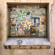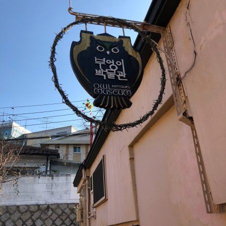 博物馆离北村韩屋村很近,但是因为位于一个小巷子里,所以不是很好找。因此在巷口就有指示牌了,博物馆的外墙上画满了猫头鹰,通往博物馆的小径上的花盆上也是,到处都充满了博物馆可爱的猫头鹰标志,越往里走你越会觉得仿佛进入了童话世界。