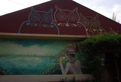5分 超棒博物馆的外墙上画满了猫头鹰,通往博物馆的小径上的花盆上也是,馆长是一个非常好的老太太