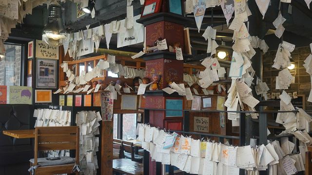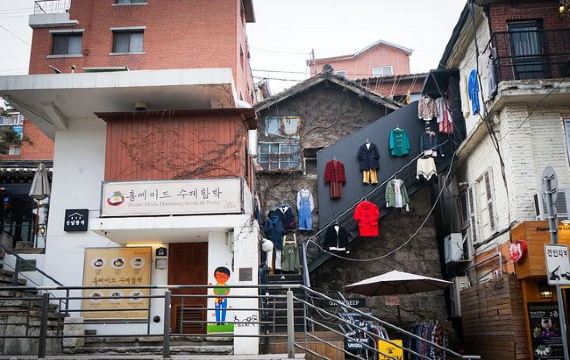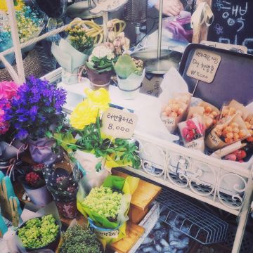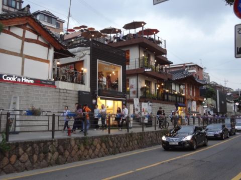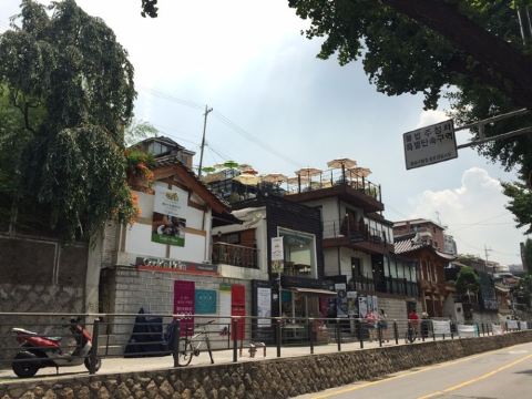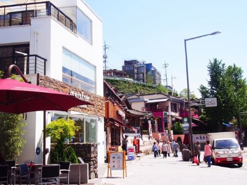 走着走着,你就会发现很多有可爱的花草装饰的咖啡厅和西式餐厅,还有很多保持原来韩屋风格的韩定食餐厅,这一代的美食有:清进洞解酒汤,乐园洞炖安康鱼,礼智洞冷面。如果你想在三清洞享受宁静的下午茶时间,可供选择的餐厅真是让人目不暇接,这里既有可以享受甜美的面包圈的咖啡厅,也有意式书店式餐厅,除此之外,还有高品位的画廊咖啡厅等等。