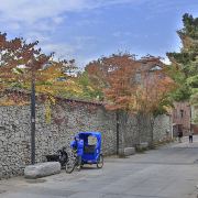 从仁寺洞散步走来,沿着景福宫的城墙走来,一路上你会看到很多素雅的建筑,这里有大名鼎鼎的李利子韩服,锦湖美术馆等有名的展览和美术馆。走过一片幽静的林荫路,抚摸景福宫城墙斑驳的石砖,这里其在秋天时是一条非常美的银杏林荫路,在这里的城墙边可以留下很多美好的回忆,透过城门,遥望远方的北汉山。