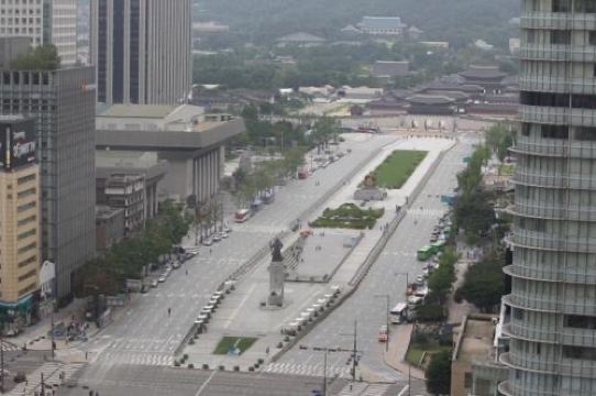 位于钟路区的光化门广场,连接了钟路十字路口和清溪川,中心广场长550米,宽34米,背靠美丽雄伟的北汉山和古建筑群景福宫,从开始的交通枢纽站渐渐演变成为市民休息娱乐的中心,同时也吸引了来自世界各地的游客。