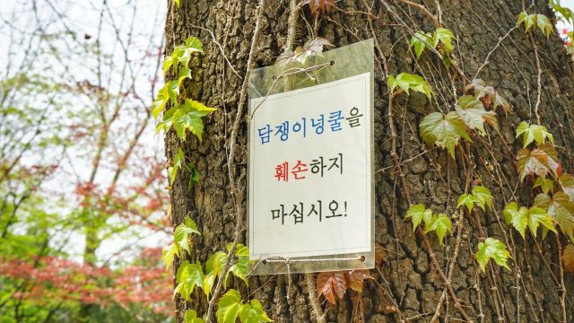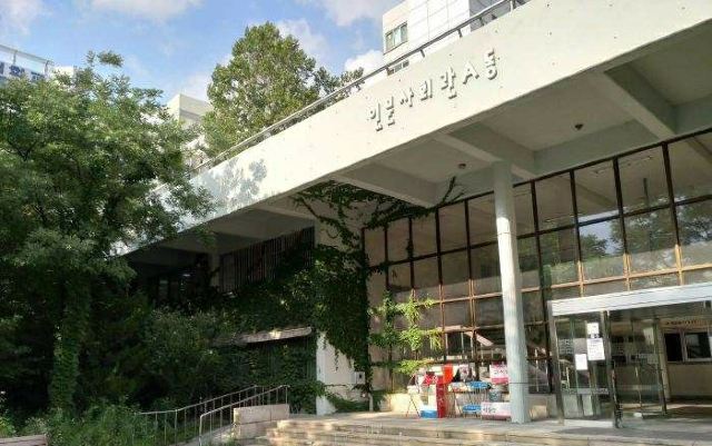 像往常一样,我到一个城市很喜欢去当地的大学逛逛,弘大的门口并不是非常显眼或者瞩目的那种,刚好进去的时间是跟学生上课时间一样,看得出来大家的确穿着是比较时尚前卫的;走在校园里,这里的绿化做得非常好,到处都是很高的大树,迎面走来很多的学生,手里拿着课本正在热烈地讨论着刚才课上的表演,这个校园让人感觉充满了活力;走到文学院前,刚好有几个学生匆匆忙忙的急着去上课,里面也传来上课问好的声音;整个校园的氛围很不错,也常常举办活动,经过球场能看到他们的黄丝带行动。