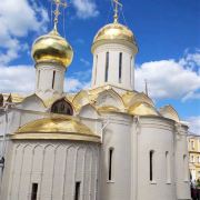 谢尔吉耶夫是俄罗斯莫斯科州东北部的一个城市,金环古城之一,俄罗斯民间艺术品木套娃的产地,也是俄罗斯玩具业的制造中心。镇内知名的景点是俄罗斯大型的修道院之一、东正教古老的教堂之一的谢尔盖圣三一修道院。修道院是由圣三教堂、杜霍夫教堂、沙皇宫殿和88米高的伊凡大帝钟楼等组成的一个美丽的建筑群,里面收藏着无数古俄罗斯绘画精品、贵金属和宝石古董。此外镇上还有知名的玩具博物馆值得一看。