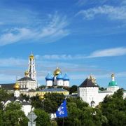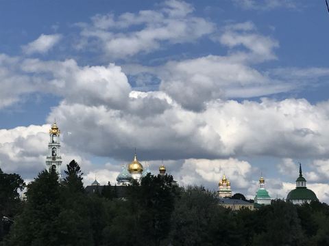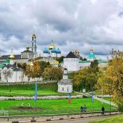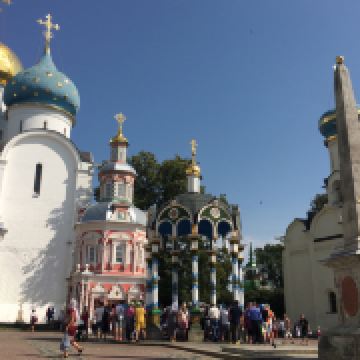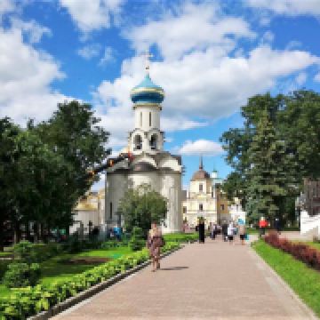 小镇的名字源于一座修道院的主人——圣谢尔盖.拉多涅日斯基。他是一位独善而苦修的高僧。谢尔盖三圣修道院是东正教的朝圣之地,也是俄罗斯地位最高的修道院。