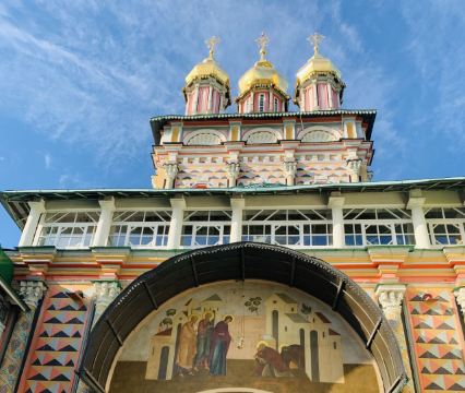 谢尔盖圣三一修道院坐落在风景如画,建筑独特的谢尔盖耶夫镇,该镇距离位于莫斯科东北约70余公里处,属于莫斯科的卫星城市,也是俄罗斯的金环城市之一。