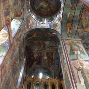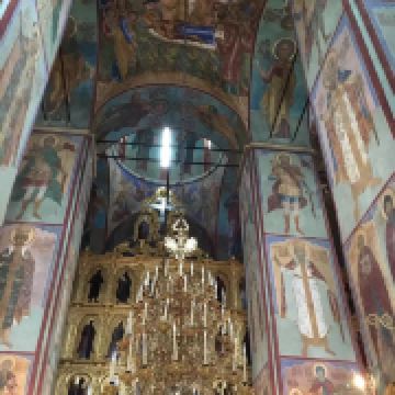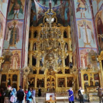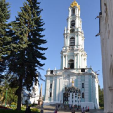 谢尔盖圣三一修道院是俄罗斯非常古老的大修道院之一,由三圣教堂,杜霍夫教堂,圣母升天教堂,小礼拜堂,公用大厅,斯摩林斯克,沙皇宫殿和88米的钟楼组成,又称特罗伊察修道院。其中有名的三圣教堂建于1423至1442年,是俄罗斯早期白石建筑艺术典范。游人在这里可以看到以画《三位一体》而出名的俄罗斯画家安德烈·鲁布廖夫的壁画作品。他的作品《三位一体》一度收藏在教堂中,现在则收藏于莫斯科的特列季亚科夫美术馆。