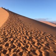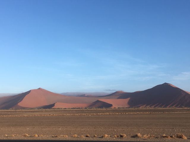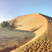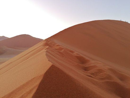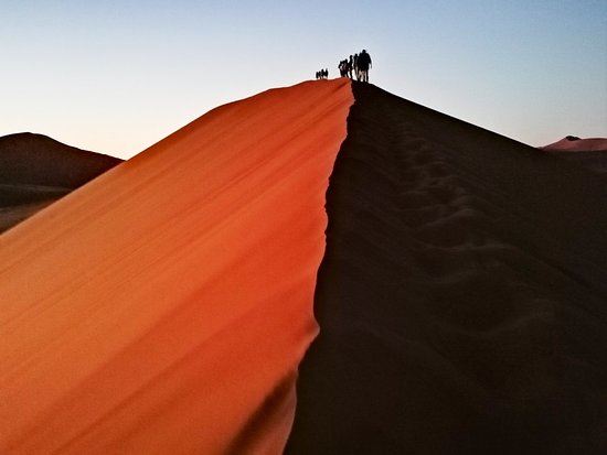 5分 超棒在这片瑰丽的红沙漠中,精髓就是地球上最大最古老的沙丘,45号沙丘,以及充满了荒凉之美的死亡谷,到了夜晚,漫天繁星铺天盖地笼罩着亿万年前的红沙漠,仿佛能够听到远古的声音,这里的体验终身难忘。日出日落是这里最迷人的时间,有条件的话可以住宿在园区内的酒店,因为只有一家酒店,否则关门时间是在日落之前,住在外面的话就没有办法等到45号沙丘的日落景观,与最佳的光景擦肩而过就太可惜了,45号沙丘因为距离景区门口45公里而得名, 有“世界最高的沙丘”、“地球最美的沙丘”之称。高近325米,因为优美的外观和线条,已成了纳米比亚红色沙漠的名片,登上《国家地理》的封面而一举成名。日落那一刻,你会发现沙丘红的似乎不那么真实。太漂亮了。