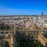 吉拉尔达塔(Giralda)是塞维利亚重要的地标之一,此塔是由阿莫阿德就于12世纪末主持修建,约70米高的观景台是俯瞰塞维利亚城市美景的好地方,塔顶20多座大钟至今仍能用优美的音色为塞维利亚居民报时。
